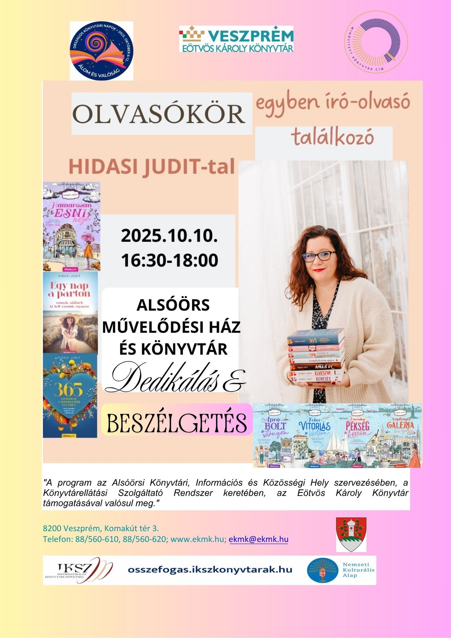 Beszélgetés, dedikálás, könyvvásárlási lehetőség