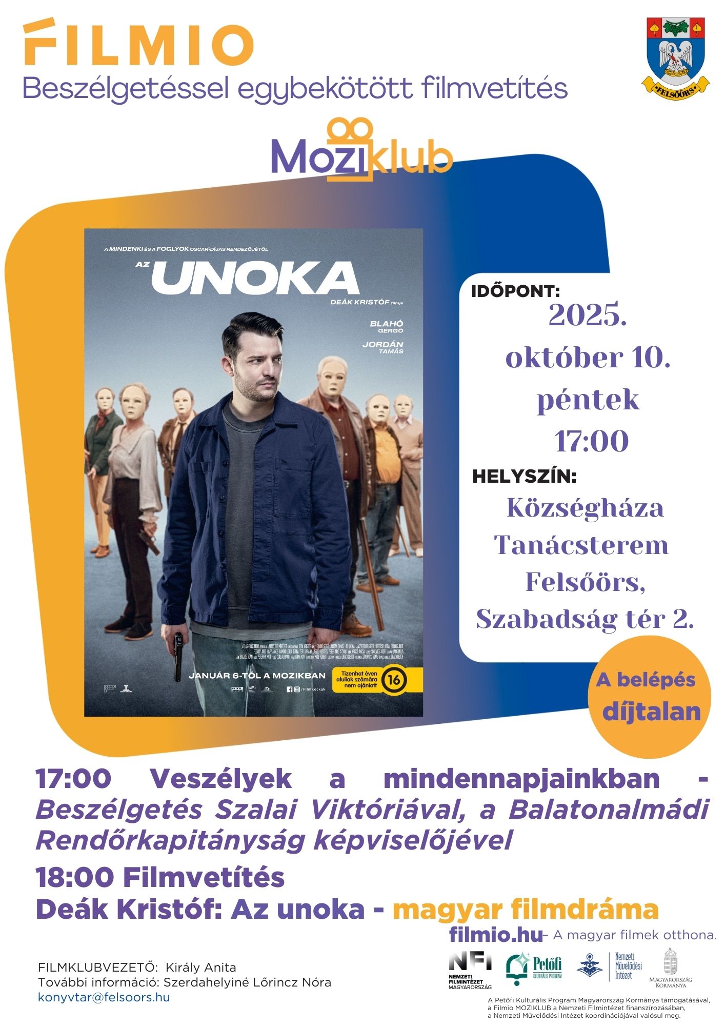 Beszélgetéssel egybekötött filmvetítés.
