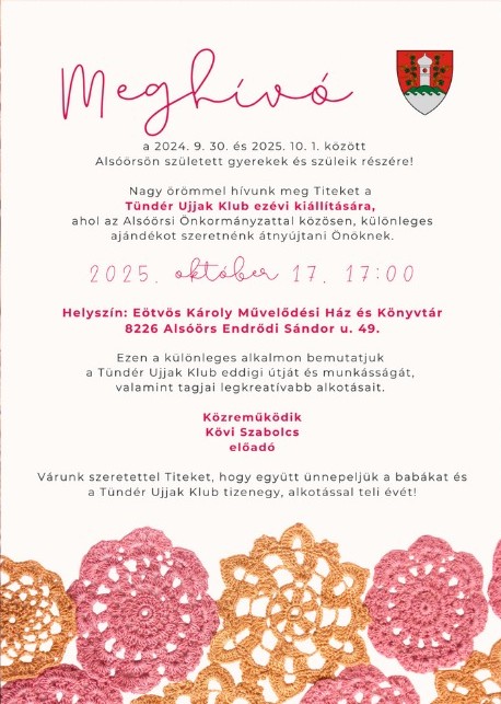 Szeretettel hívunk mindenkit a Tündér Ujjak Klub idei kiállítására, ahol együtt ünnepeljük az alkotás örömét, a közösség erejét és a hagyomány továbbörökítését!