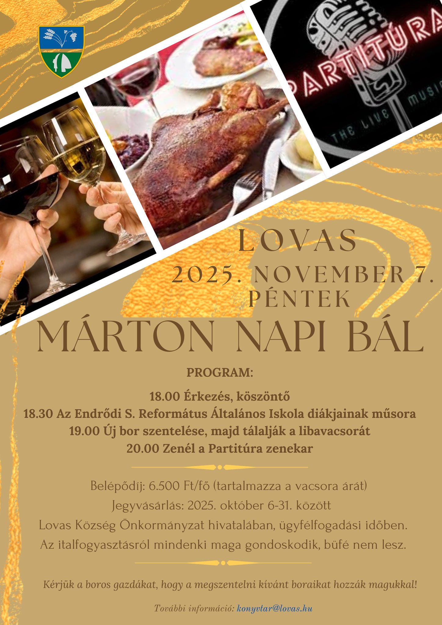 Jegyvásárlás: október 6–31. között a Lovasi Polgármesteri Hivatalban, ügyfélfogadási időben.