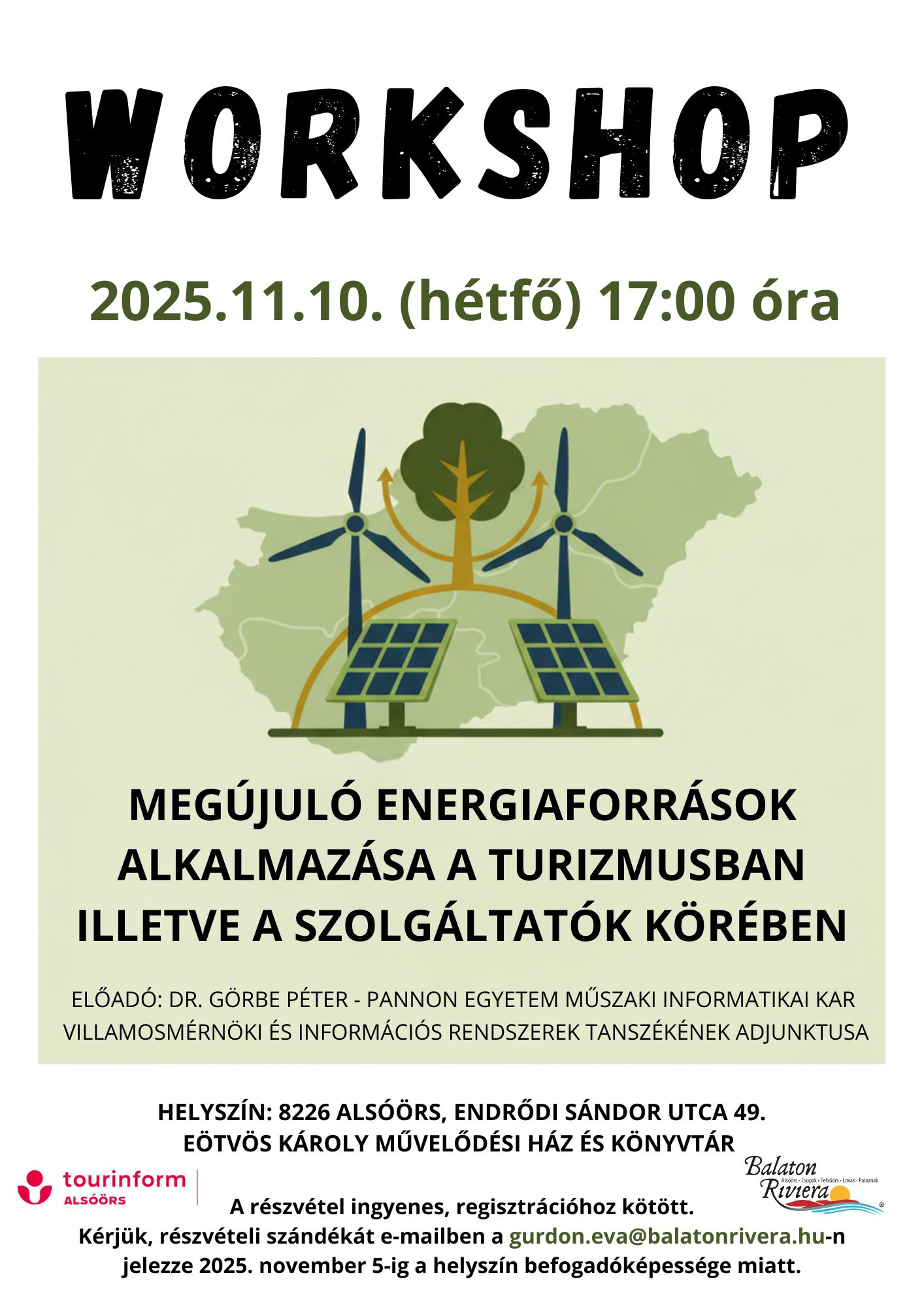 Megújuló energiaforrások alkalmazása a turizmusban illetve a szolgáltatók körében.