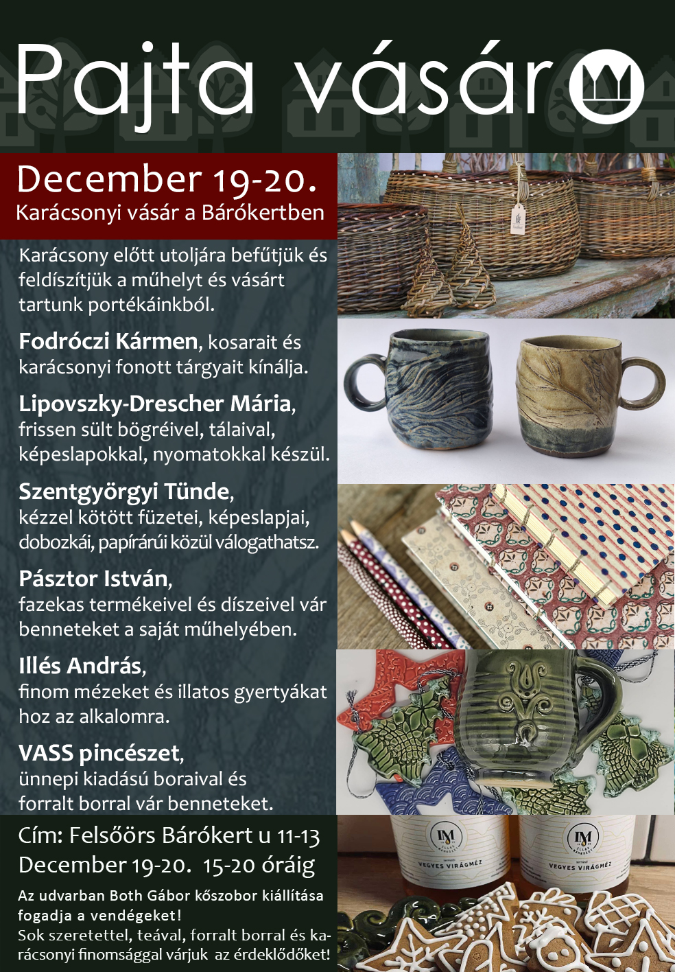 Sok szeretettel, teával, forralt borral és karácsonyi finomsággal várjuk az érdeklődőket pénteken és szombaton 15-20 óra között!