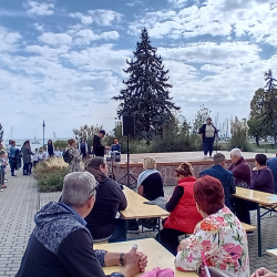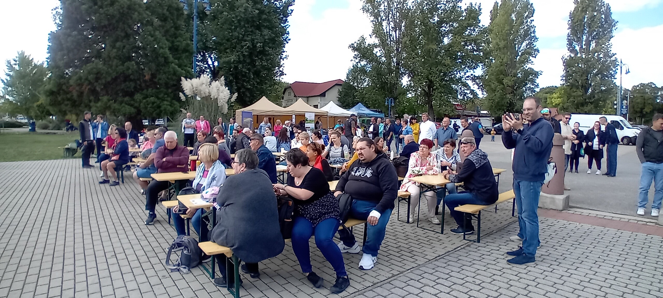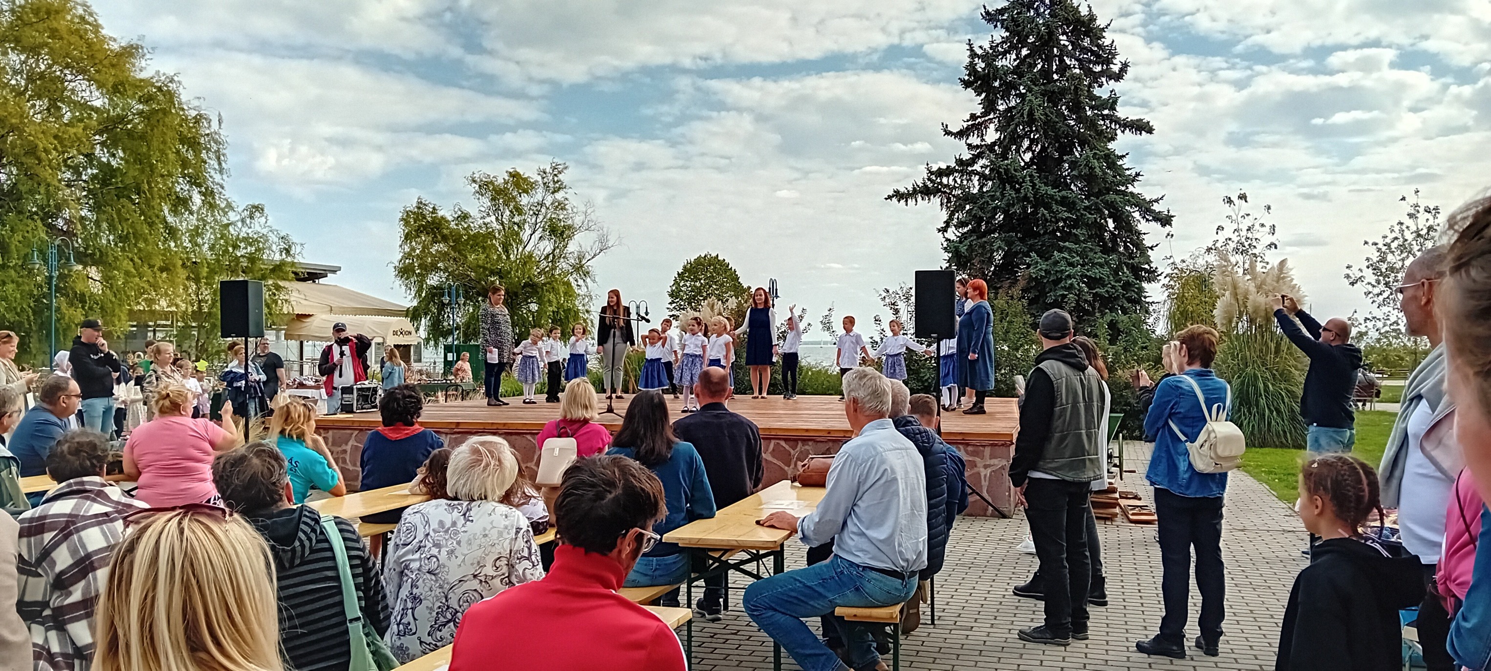 A nap egyik legemlékezetesebb pillanata kétségkívül az volt, amikor Paloznak település szüreti felvonulói megérkeztek a Sirály parkba. A zenés, táncos menet igazi látványosságként vonult végig a falun és a közönség lelkes tapssal fogadta őket. Ez a közösségi élmény szimbolikusan is összekapcsolta a két szomszédos települést és emlékeztetett arra, hogy a hagyományok közös értékeink.